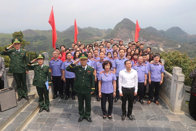 Trước anh linh các Anh hùng Liệt sĩ, Đoàn công tác đã dâng hương, dâng hoa tưởng nhớ, bày tỏ lòng biết ơn vô hạn và khắc ghi công lao to lớn của các Anh hùng Liệt sĩ đã anh dũng chiến đấu, hy sinh cả tuổi thanh xuân của mình để bảo vệ từng tấc đất bờ cõi biên cương thiêng liêng của Tổ quốc.