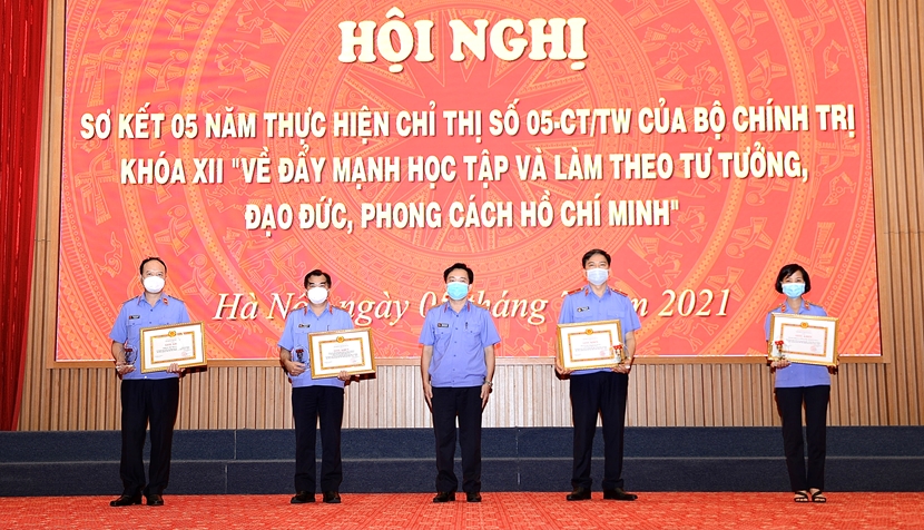 Tại Hội nghị, Đảng ủy VKSND tối cao đã công bố các quyết định khen thưởng của Đảng uỷ Khối các cơ quan Trung ương, của Viện trưởng VKSND tối cao, của Đảng uỷ VKSND tối cao đối với các tập thể, cá nhân có thành tích trong việc học tập và làm theo tư tưởng, đạo đức, phong cách Hồ Chí Minh giai đoạn 2016-2021.