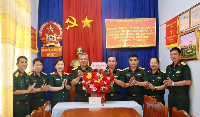 Mới đây, Đảng ủy, Ban Chỉ huy Phòng thủ Khu vực 2 - Phú Lợi/Bộ Tư lệnh TP HCM tổ chức Đoàn đến thăm, tặng hoa chúc mừng VKS Quân sự Khu vực 73 nhân kỷ niệm 50 năm Ngày truyền thống VKS Quân sự Quân khu 7 (17/12/1975 – 17/12/2025).