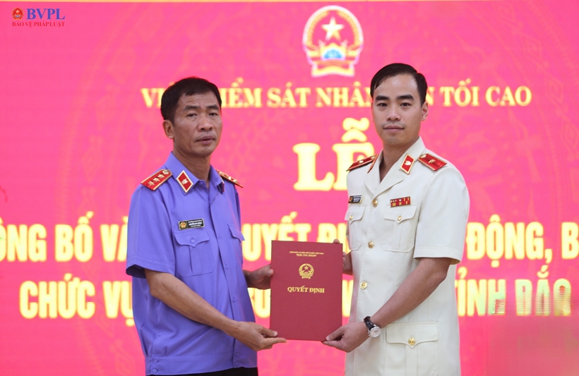 | Đồng chí Nguyễn Duy Giảng, Phó Viện trưởng VKSND tối cao trao quyết định điều động, bổ nhiệm đồng chí Phạm Hải Anh giữ chức vụ Viện trưởng VKSND tỉnh Bắc Ninh. |