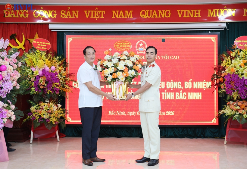 | Lãnh đạo Vụ 1, VKSND tối cao chúc mừng đồng chí tân Viện trưởng VKSND tỉnh Bắc Ninh. |