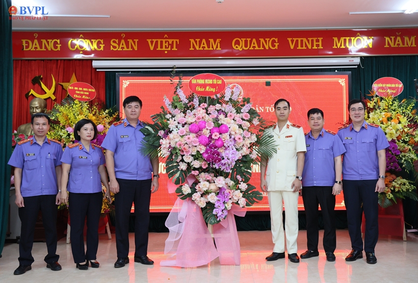 | Lãnh đạo Văn phòng VKSND tối cao chúc mừng đồng chí Phạm Hải Anh, Viện trưởng VKSND tỉnh Bắc Ninh. |
