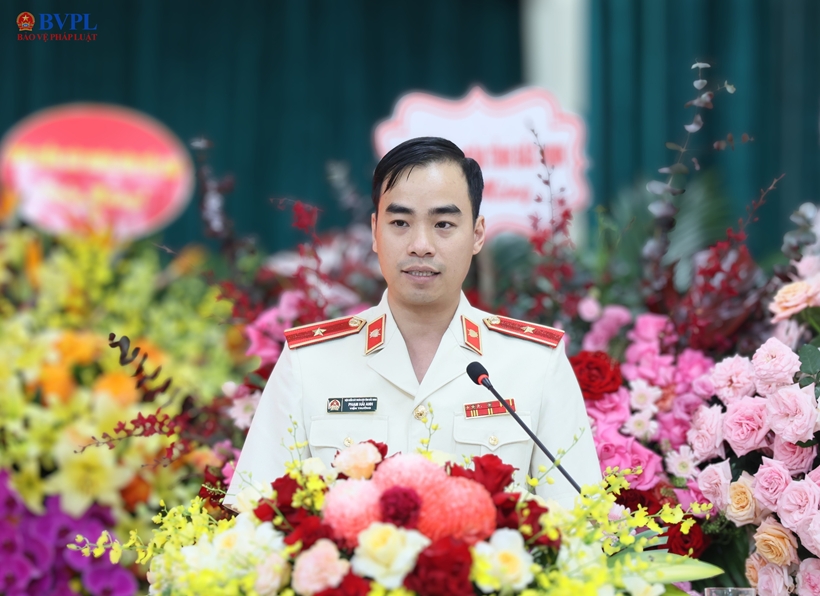 | Đồng chí Phạm Hải Anh, tân Viện trưởng VKSND tỉnh Bắc Ninh phát biểu nhận nhiệm vụ. |