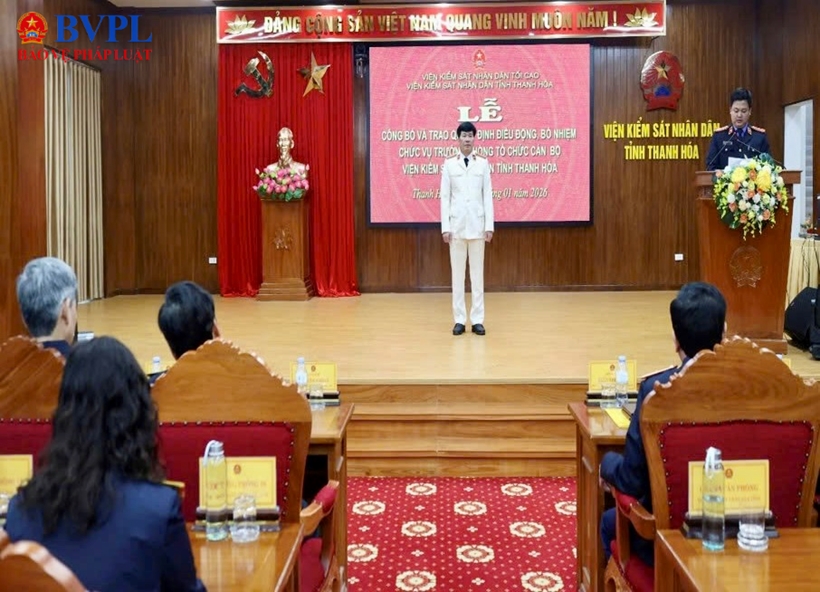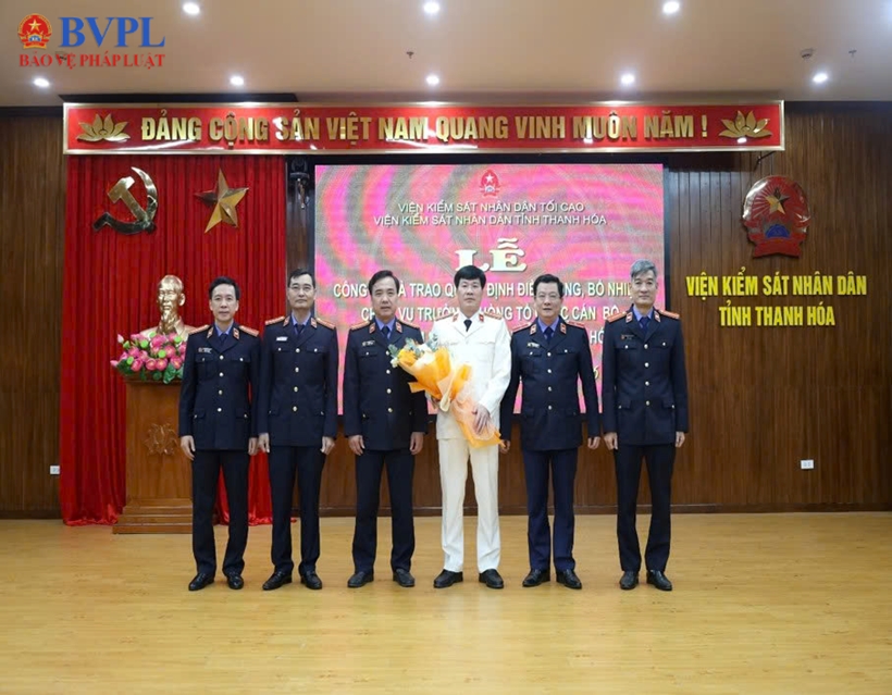 Tại buổi lễ, đồng chí Nguyễn Văn Dũng, Chánh Văn phòng công bố Quyết định của Viện trưởng VKSND tỉnh về việc điều động, bổ nhiệm đồng chí Đinh Viết Sơn, Viện trưởng VKSND khu vực 9 - Thanh Hoá giữ chức vụ Trưởng phòng Tổ chức cán bộ VKSND tỉnh Thanh Hóa.