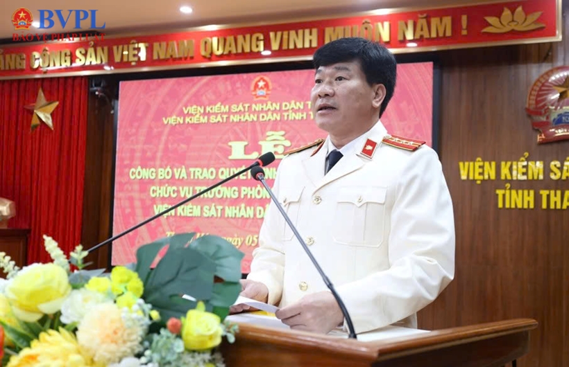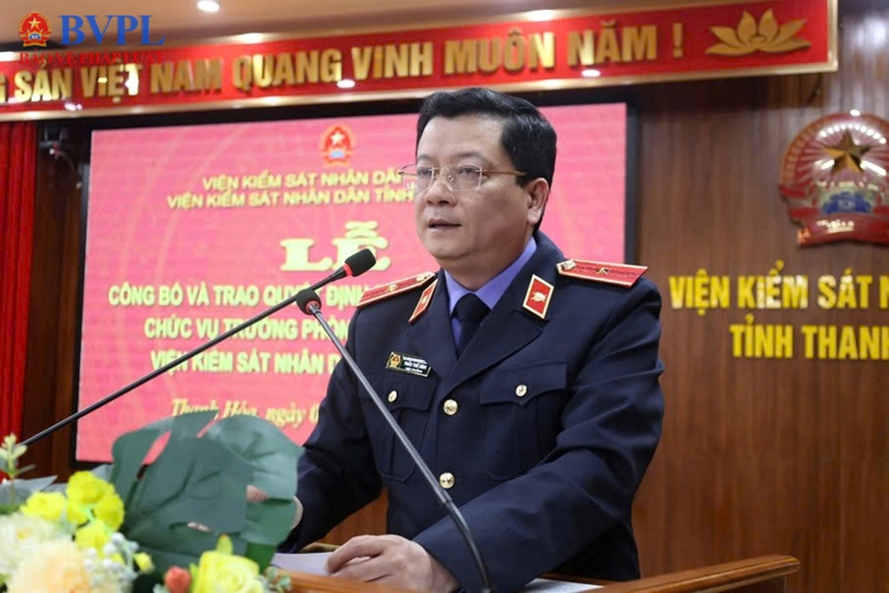 | Đồng chí Nguyễn Văn Dũng, Chánh Văn phòng VKSND tỉnh công bố Quyết định điều động, bổ nhiệm đối với đồng chí Đinh Viết Sơn. |