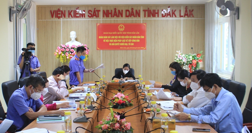 Tại buổi làm việc, các thành viên đoàn giám sát đã thảo luận, yêu cầu làm rõ thêm một số tồn tại, vướng mắc trong công tác tiếp công dân và giải quyết khiếu nại tố cáo của ngành Kiểm sát, như: việc bố trí cán bộ thực hiện nhiệm vụ tiếp công dân, giải quyết khiếu nại, tố cáo; việc kiểm tra, đôn đốc, phát hiện các vi phạm, thiếu sót; công tác phối hợp, tuyên truyền, phổ biến giáo dục pháp luật…