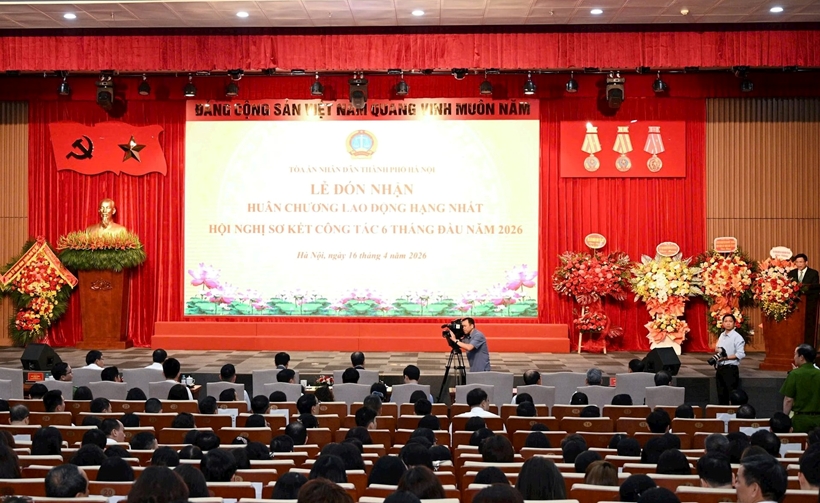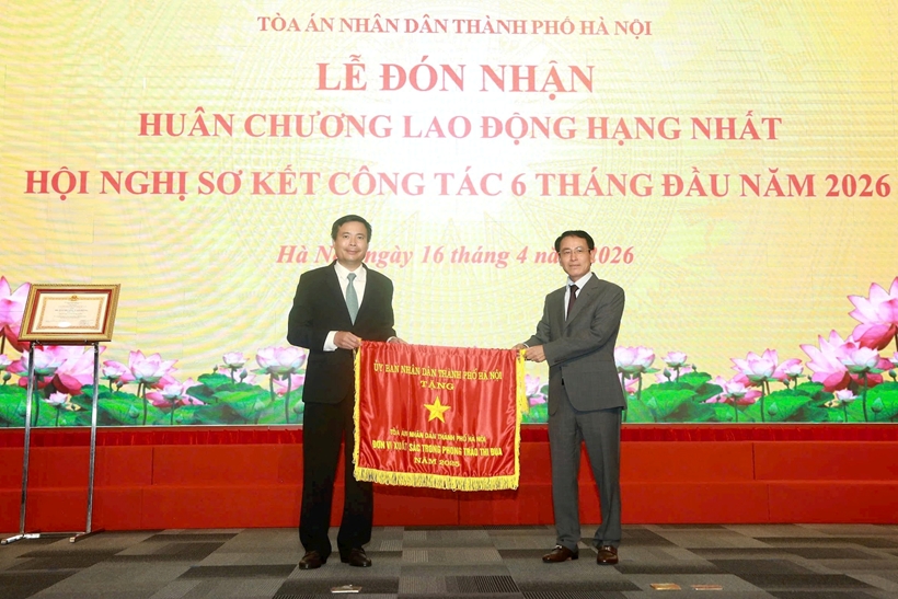 Ngày 16/4, TAND TP Hà Nội tổ chức Lễ đón nhận Huân chương Lao động hạng Nhất và Hội nghị sơ kết công tác 6 tháng đầu năm 2026. Đồng chí Nguyễn Văn Quảng, Bí thư Trung ương Đảng, Bí thư Đảng ủy, Chánh án TAND tối cao dự và chỉ đạo buổi lễ.