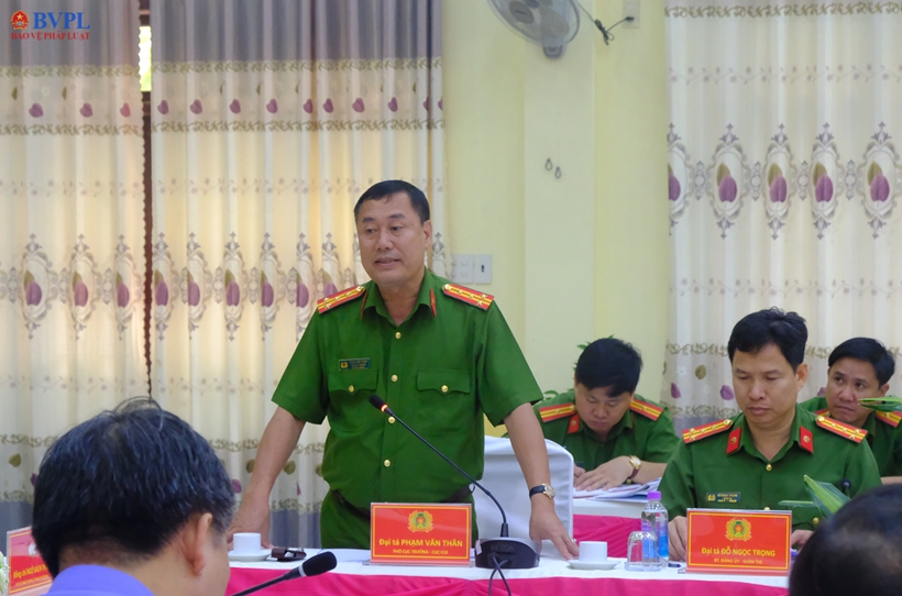 | Lãnh đạo Cục C10- Bộ Công an phát biểu tại buổi làm việc với Trại giam A2. Ảnh: NH. |