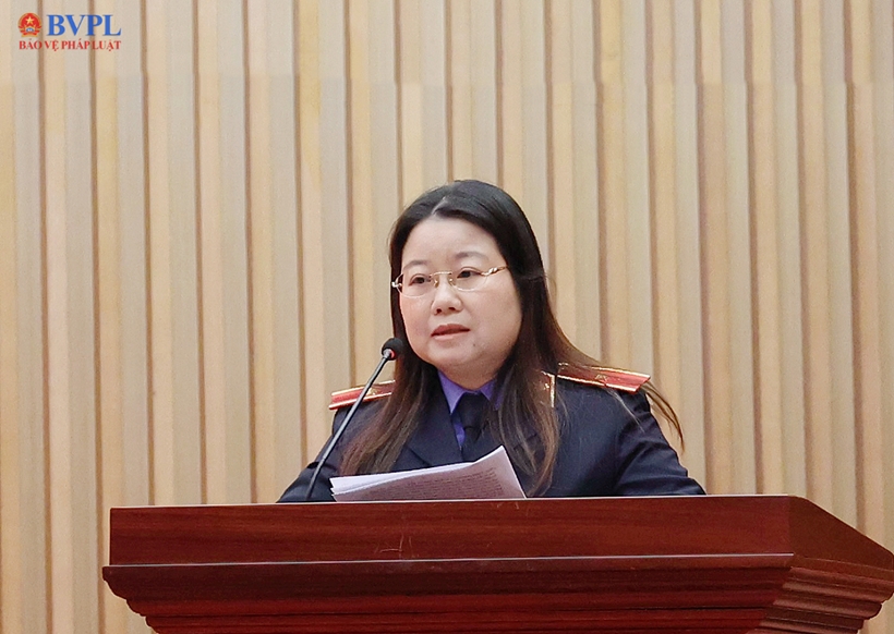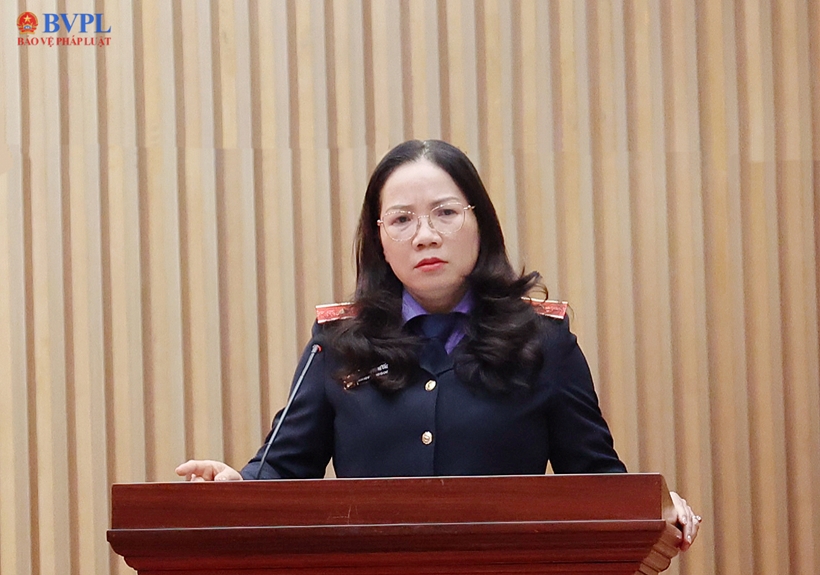 | Đồng chí Hoàng Thị Quỳnh Chi, Kiểm sát viên VKSND tối cao phát biểu, giải đáp một số vướng mắc. |