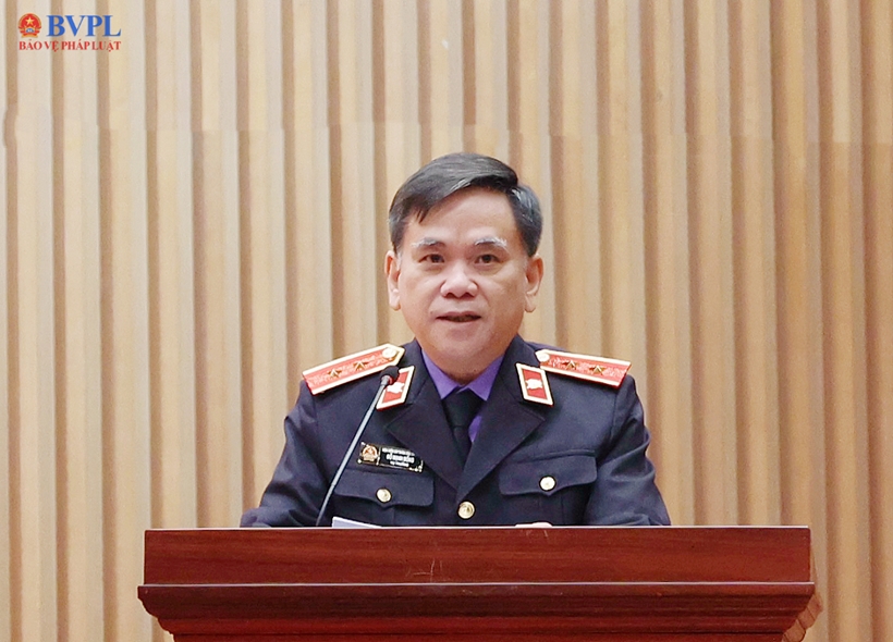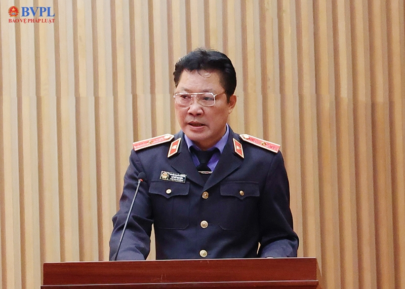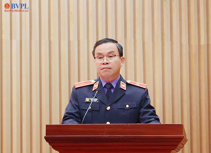 | Đồng chí Phan Văn Tâm, Phó Vụ trưởng Vụ 10, VKSND tối cao phát biểu tại Hội nghị. |