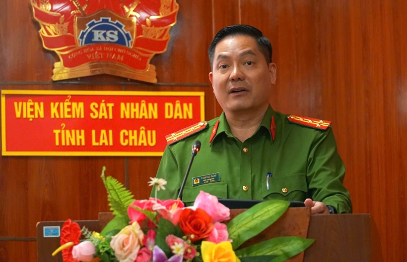 | Đại tá Phạm Hải Đăng, Phó Giám đốc, Thủ trưởng Cơ quan CSĐT Công an tỉnh Lai Châu phát biểu. |