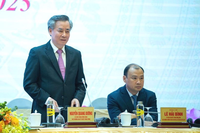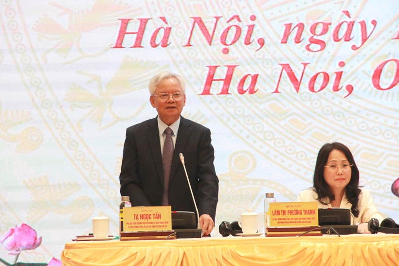 Dự và chủ trì họp báo có Ủy viên Trung ương Đảng, Phó Trưởng ban Thường trực Ban Tuyên giáo và Dân vận Trung ương Lại Xuân Môn; Ủy viên Trung ương Đảng, Phó Chánh Văn phòng Thường trực Văn phòng Trung ương Đảng Lâm Thị Phương Thanh; Ủy viên Trung ương Đảng, Phó Trưởng Ban Tổ chức Trung ương Nguyễn Quang Dương; nguyên Ủy viên Trung ương Đảng, Phó Chủ tịch Thường trực Hội đồng Lý luận Trung ương Tạ Ngọc Tấn - Tổ phó Thường trực Tổ Biên tập Văn kiện Đại hội XIV của Đảng; Ủy viên dự khuyết Trung ương Đảng, Thứ trưởng Thường trực Bộ Văn hóa, Thể thao và Du lịch Lê Hải Bình.