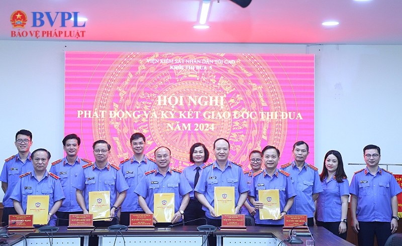 Với chủ đề “Đoàn kết, đổi mới, vượt khó, hoàn thành xuất sắc nhiệm vụ năm 2024”, năm 2024, Khối thi đua số 5- VKSND tối cao ký kết giao ước thi đua nhằm tổ chức thực hiện tốt phong trào thi đua do Nhà nước, ngành Kiểm sát nhân dân phát động; nâng cao chất lượng hiệu quả, thực hiện thắng lợi các nhiệm vụ chính trị trọng tâm của các cơ quan trong Khối năm 2024, góp phần cùng với toàn Ngành thực hiện hoàn thành thắng lợi các mục tiêu, nhiệm vụ chính trị năm 2024.