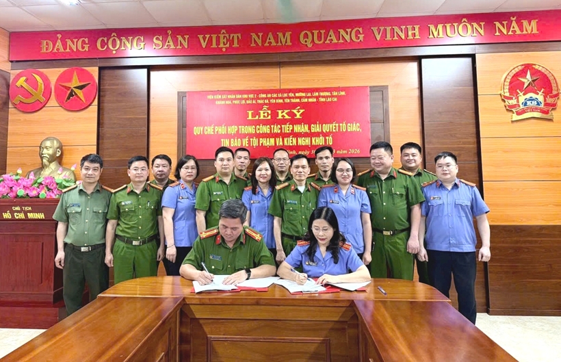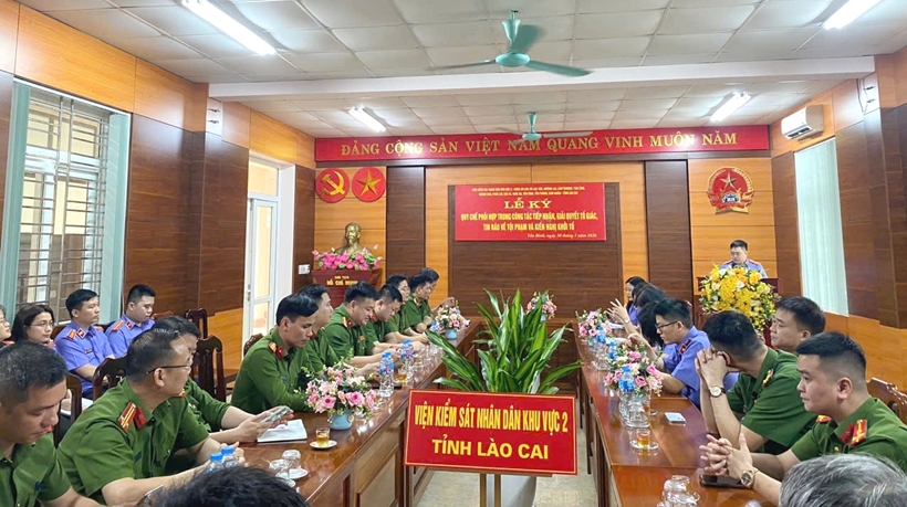 Nhằm tăng cường hiệu quả công tác phối hợp trong tiếp nhận, giải quyết tố giác, tin báo về tội phạm và kiến nghị khởi tố, VKSND khu vực 2, tỉnh Lào Cai vừa tổ chức Hội nghị ký Quy chế phối hợp với Công an 11 xã trên địa bàn.