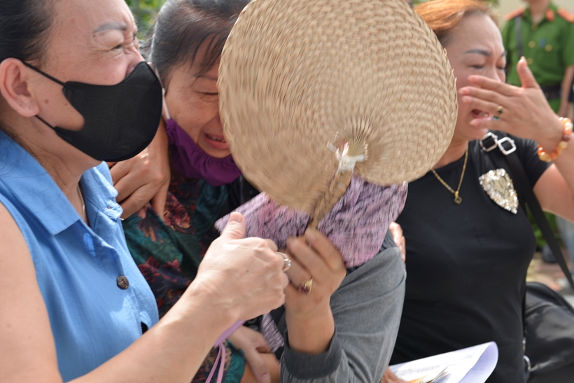 | Người nhà, người thân, bạn bè của các phạm nhân chờ đợi bên ngoài Trại giam Thanh Xuân. |