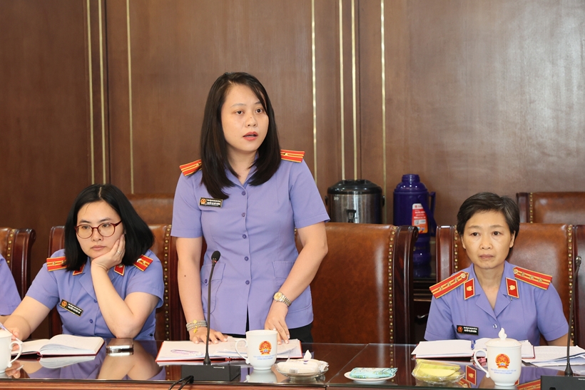 | Đồng chí Nguyễn Thị Thùy Dương - Kiểm sát viên Vụ 2 phát biểu tham luận tại hội nghị. |