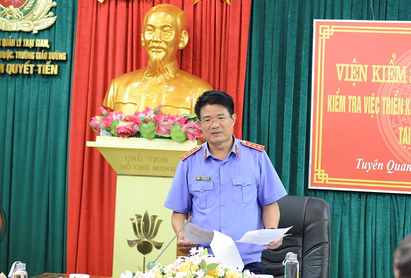 Cùng tham gia Đoàn công tác có đại diện lãnh đạo Vụ Kiểm sát việc tạm giữ, tạm giam và thi hành án hình sự (Vụ 8) - VKSND tối cao và đại diện lãnh đạo Cục Cảnh sát Quản lí trại giam, cơ sở giáo dục bắt buộc, trường giáo dưỡng (C10) - Bộ Công an.