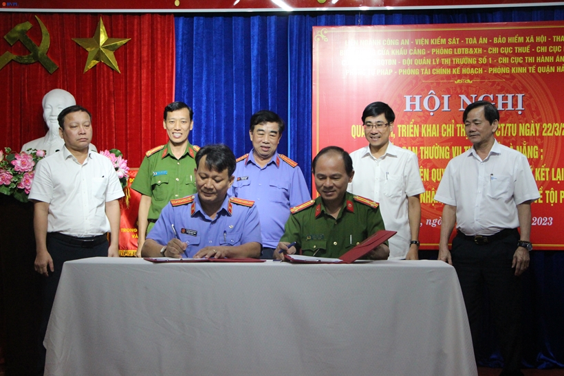 Các đơn vị liên ngành quận Hải Châu cũng đã tiến hành ký kết lại Quy chế phối hợp số 01/2023 thay thế cho Quy chế phối hợp số 01/2019 về tiếp nhận, giải quyết tố giác, tin báo về tội phạm và kiến nghị khởi tố trên địa bàn quận.