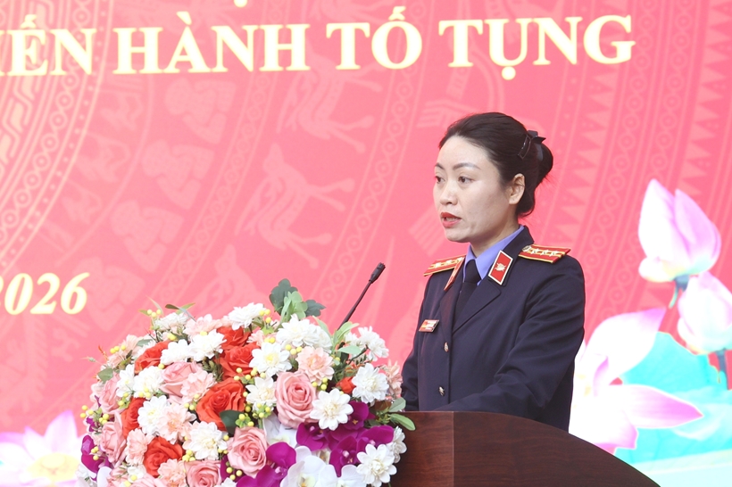 | Đồng chí Đào Hoàng Vân, Phó trưởng Phòng 3 VKSND TP Hà Nội phát biểu tham luận tại Hội nghị. |
