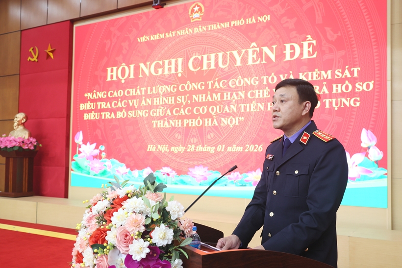 Hội nghị được tổ chức trực tiếp tại Hội trường VKSND TP Hà Nội và trực tuyến tới 12 điểm cầu là 12 VKSND khu vực - Hà Nội. Đây là dịp quan trọng để các cơ quan tiến hành tố tụng TP Hà Nội nhìn thẳng vào thực trạng trả hồ sơ điều tra bổ sung (ĐTBS), phân tích nguyên nhân, xác định trách nhiệm và đề ra các giải pháp đồng bộ nhằm khắc phục tình trạng án phải trả hồ sơ ĐTBS, góp phần nâng cao hiệu quả đấu tranh phòng, chống tội phạm, bảo đảm quyền con người, quyền công dân trong tố tụng hình sự.