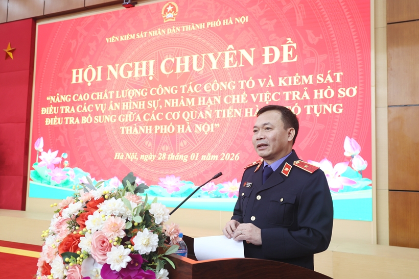 Tại hội nghị, các đại biểu đã xem Báo cáo chuyên đề do VKSND TP Hà Nội xây dựng được trình chiếu qua video clip. Theo báo cáo, trong giai đoạn từ ngày 1/10/2024 đến 30/9/2025, các cơ quan tiến hành tố tụng hai cấp của thành phố thụ lý tổng cộng 15.646 vụ án hình sự. Trong đó, Viện kiểm sát và Tòa án đã trả hồ sơ để điều tra bổ sung 793 vụ, chiếm tỷ lệ 5,07% tổng số vụ thụ lý, tăng 0,5% so với cùng kỳ năm trước. Đáng chú ý, Viện kiểm sát trả hồ sơ cho Cơ quan điều tra 450 vụ; Tòa án trả hồ sơ cho Viện kiểm sát 343 vụ. Tỷ lệ này được đánh giá là còn cao, phản ánh những hạn chế, bất cập trong phối hợp liên ngành cũng như trong từng khâu điều tra, truy tố, xét xử.