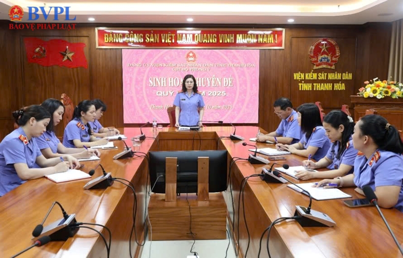 Thực hiện Công văn số 02-CV/ĐU ngày 24/9/2025 của Đảng ủy các cơ quan Đảng tỉnh về định hướng công tác tuyên truyền quý IV/2025; Công văn số 704-CV/BTGDVTU ngày 07/10/2025 của Ban Tuyên giáo và Dân vận Tỉnh ủy về việc tổ chức đợt tuyên truyền cao điểm chào mừng Đại hội Đảng bộ tỉnh Thanh Hóa lần thứ XX, nhiệm kỳ 2025–2030 và Công văn số 329-CV/ĐU ngày 10/10/2025 của Đảng ủy Viện kiểm sát nhân dân tỉnh Thanh Hóa về công tác tuyên truyền quý IV và đợt cao điểm chào mừng Đại hội, Chi bộ Phòng 7 đã tổ chức buổi sinh hoạt chuyên đề với chủ đề “Chào mừng Đại hội Đảng bộ tỉnh Thanh Hóa lần thứ XX, nhiệm kỳ 2025–2030”.