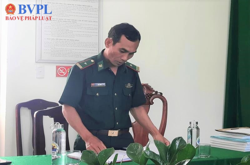 | Đồng chí Điểu Đinh - Đồn Phó Đồn Biên phòng Lộc Tấn báo cáo tình hình thực hiện công tác tiếp nhận, phân loại, xử lý nguồn tin về tội phạm của đơn vị. |