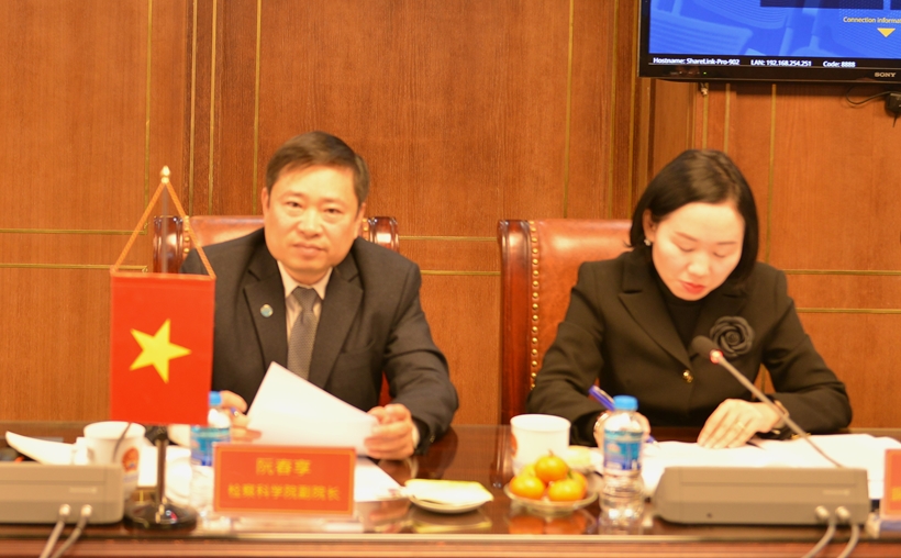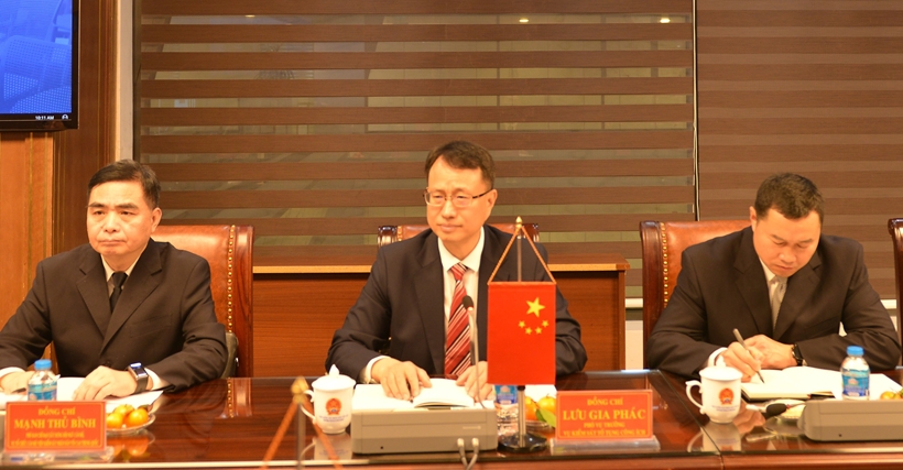 Về phía Đoàn đại biểu VKSND tối cao Trung Quốc có đồng chí Lưu Gia Phác, Phó Vụ trưởng Vụ Kiểm sát tố tụng công ích, Trưởng đoàn cùng các thành viên.