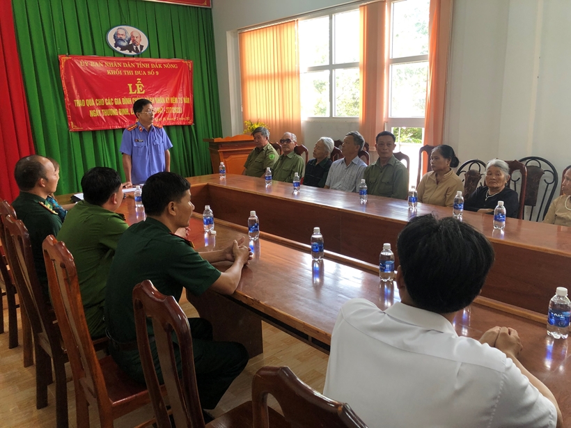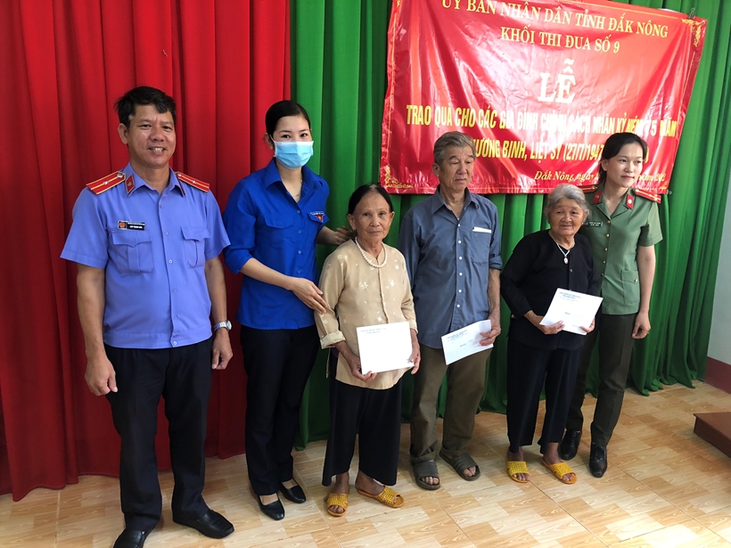 Ngày 25/7/2022, Khối thi đua số 9 UBND tỉnh Đắk Nông do VKSND tỉnh làm khối trưởng phối hợp với chính quyền địa phương tổ chức đến thăm hỏi, trao tặng quà cho các gia đình chính sách, thương, bệnh binh có hoàn cảnh khó khăn trên địa bàn xã Đắk N’Drung, huyện biên giới Đắk Song và xã Đắk Búk So, huyện biên giới Tuy Đức.