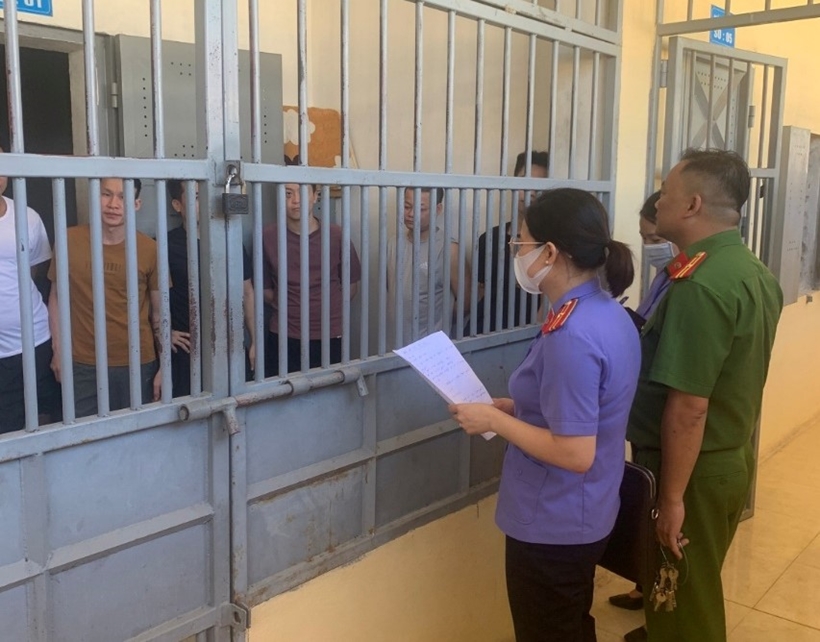 Đoàn kiểm sát trực tiếp tiến hành kiểm tra sổ sách, tài liệu, hồ sơ, gặp hỏi người bị tạm giữ, tạm giam tại Nhà tạm giữ Công an huyện Vĩnh Lộc.
