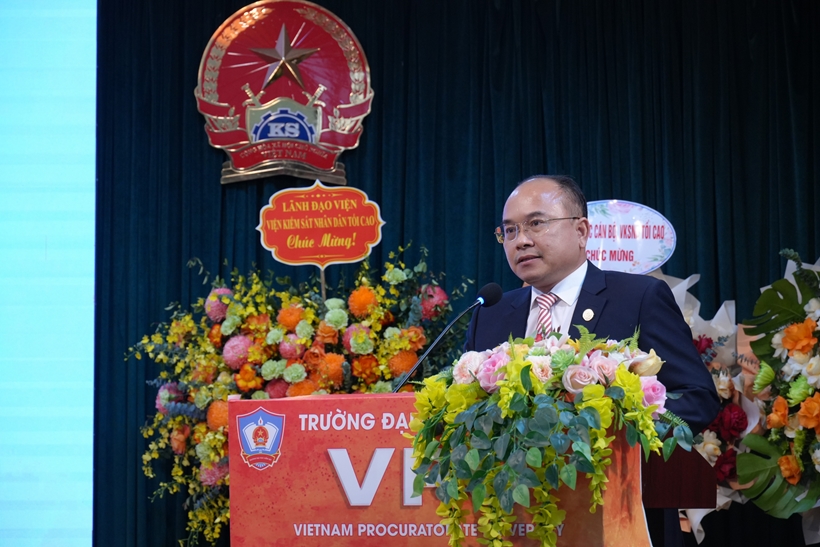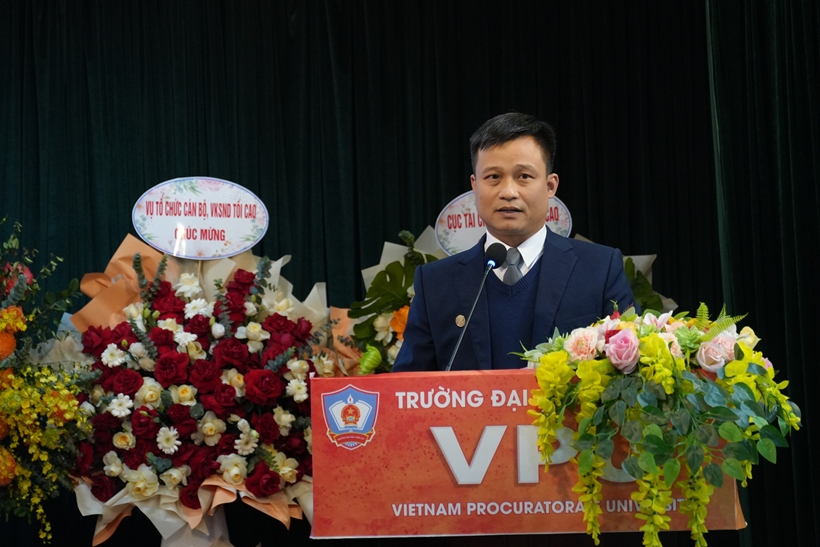 Thay mặt lãnh đạo VKSND tối cao, đồng chí Hồ Đức Anh, Phó Bí thư Thường trực Đảng ủy, Phó Viện trưởng VKSND tối cao, Chủ tịch Hội đồng Trường, phát biểu ghi nhận những kết quả đào tạo của Nhà trường trong thời gian qua và nhấn mạnh tầm quan trọng của việc nâng cao chất lượng nguồn nhân lực kiểm sát, đổi mới chương trình đào tạo, đồng thời tăng cường gắn kết giữa Nhà trường với thực tiễn hoạt động kiểm sát.