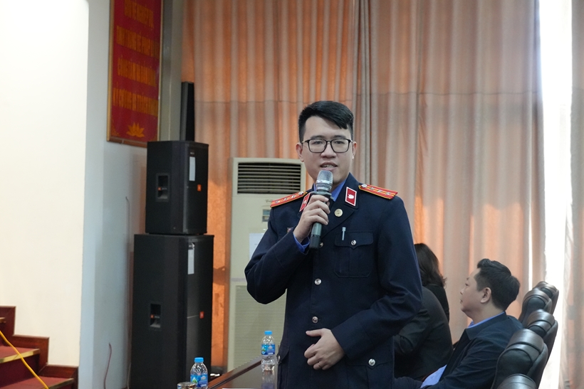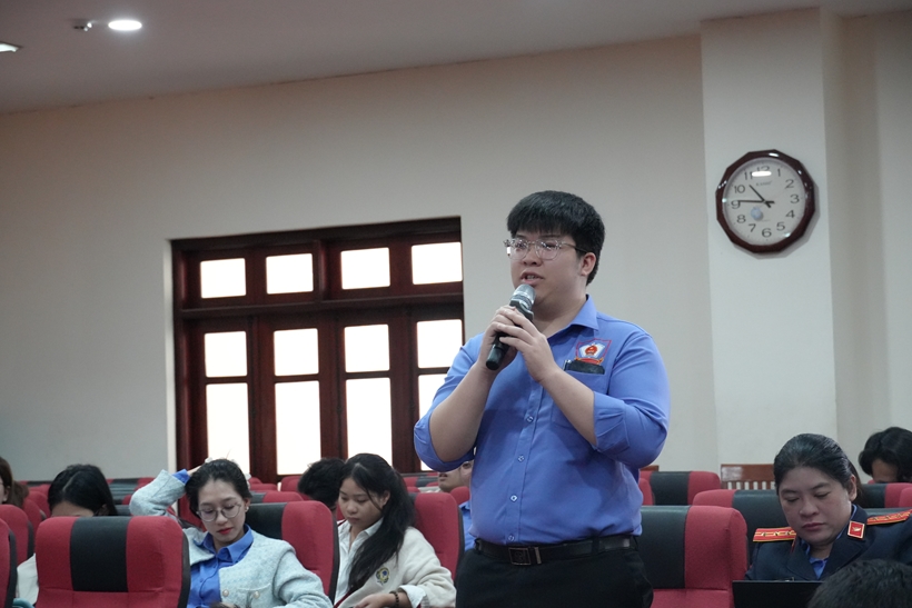 | Thầy Nguyễn Đức Tâm - Phó Bí thư Đoàn Trường Đại học Kiểm sát trả lời tại buổi đối thoại. |