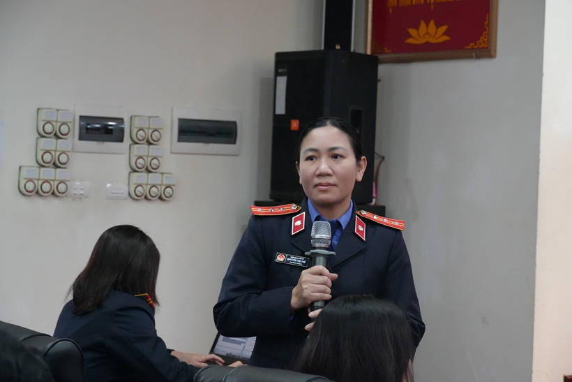 | Đồng chí Nguyễn Thị Thế, Trưởng khoa Pháp luật dân sự và Kiểm sát dân sự trả lời tại buổi đối thoại. |