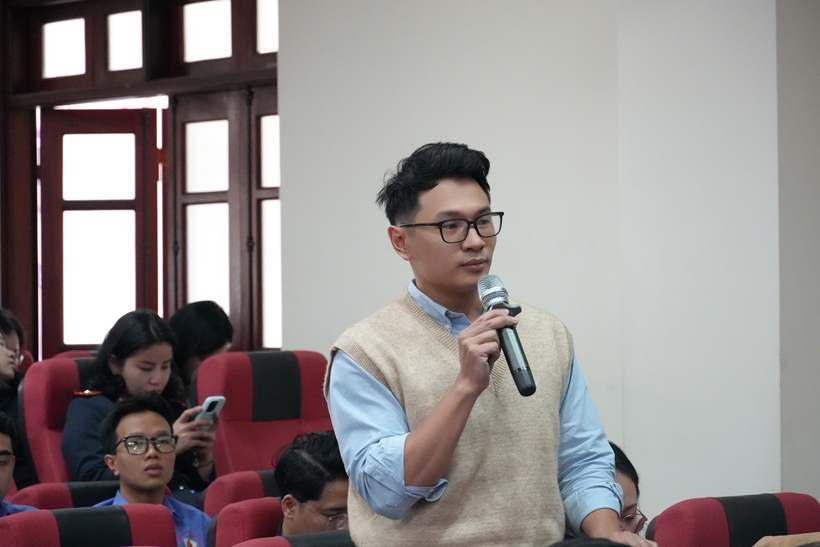 | Sinh viên Nguyễn Duy Bằng đặt câu hỏi tại buổi đối thoại. |