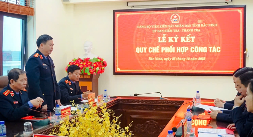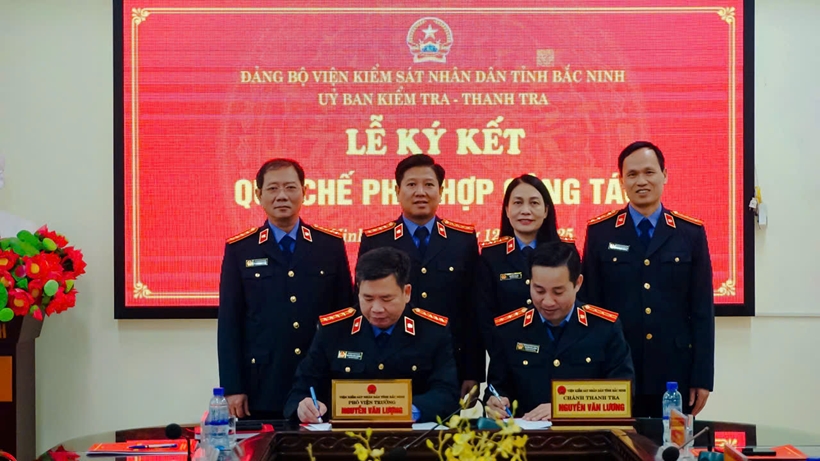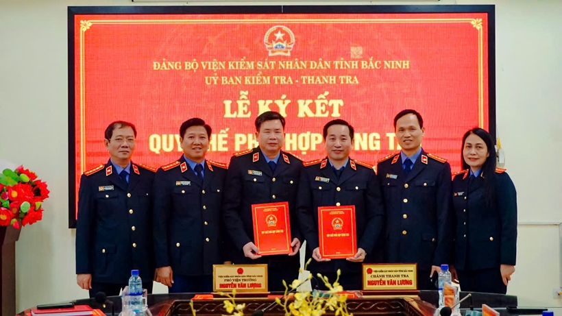| Lãnh đạo Ủy ban Kiểm tra Đảng ủy và Thanh tra VKSND tỉnh Bắc Ninh tổ chức ký Quy chế phối hợp công tác. |