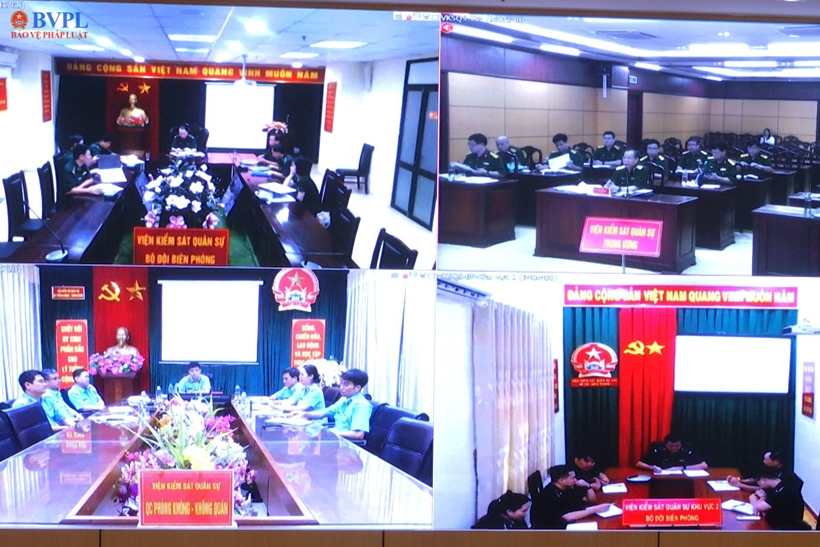 | Hội nghị trực tuyến giao ban tại điểm cầu VKSQS Trung ương và các điểm cầu VKSQS cấp khu vực và quân khu.