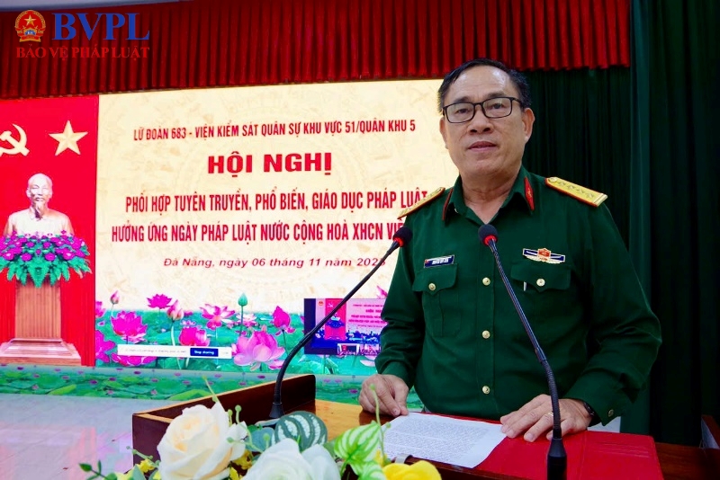 Hưởng ứng Ngày Pháp luật Việt Nam (9/11), ngày 6/11/2025, tại TP Đà Nẵng, VKSQS Khu vực 51 phối hợp với Lữ đoàn 683 (Cục Xe máy - Vận tải, Tổng cục Hậu cần - Kỹ thuật) tổ chức hoạt động tuyên truyền, phổ biến pháp luật cho cán bộ, chiến sĩ trong toàn đơn vị.
