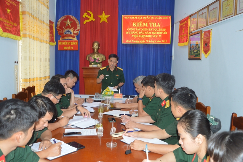 Đoàn kiểm tra do Thượng tá Trần Trung Hiếu – Phó Viện trưởng Viện kiểm sát quân sự Quân khu 7 làm Trưởng đoàn tiến hành kiểm tra các công tác kiểm sát quân sự 6 tháng đầu năm đối với Viện kiểm sát quân sự khu vực 73, Quân khu 7.
