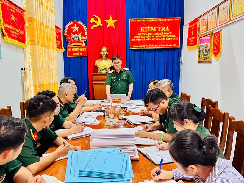 Tại buổi làm việc, Thượng tá Lê Tú, Viện trưởng VKS Quân sự Khu vực 73 trình bày báo cáo tổng kết năm 2025, trong đó nhấn mạnh: Đơn vị đã quán triệt từng cán bộ, Kiểm sát viên thực hiện nghiêm túc Chỉ thị của Viện trưởng VKSND tối cao, chương trình công tác của VKS Quân sự Trung ương và kế hoạch công tác kiểm sát quân sự năm 2025 của VKS Quân sự Quân khu 7.