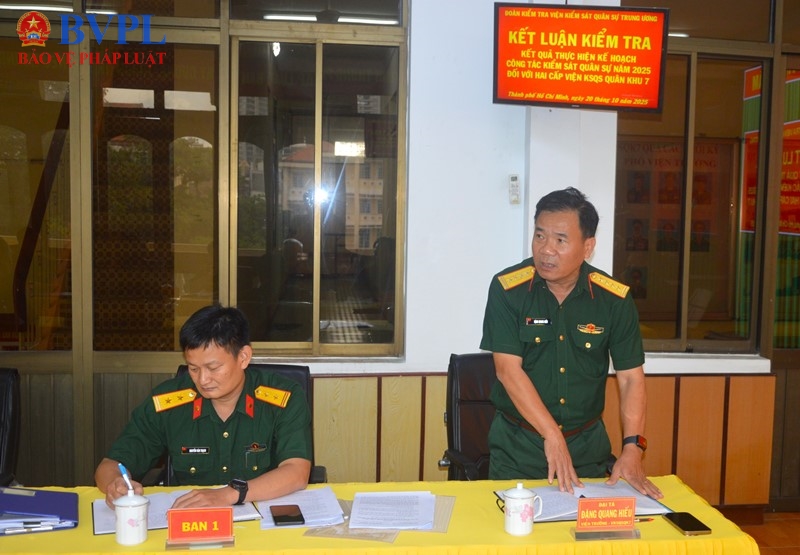 Phát biểu tiếp thu ý kiến, đồng chí Đại tá Đặng Quang Hiếu, Viện trưởng VKSQS Quân khu 7 đã cảm ơn và tiếp thu ý kiến chỉ đạo của Đoàn kiểm tra VKSQS Trung ương và sẽ triển khai các biện pháp lãnh đạo, chỉ đạo để phát huy hơn nữa ưu điểm; khắc phục các hạn chế, thiếu sót mà Đoàn kiểm tra đã chỉ ra để hoàn thành tốt hơn việc thực hiện chức năng, nhiệm vụ trong thời gian tới.