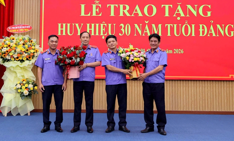 Đảng bộ Viện Công tố và kiểm sát xét xử phúc thẩm tại Đà Nẵng (Viện phúc thẩm 2) vừa tổ chức Lễ trao tặng Huy hiệu 30 năm tuổi Đảng cho đồng chí Trần Đức Dương và đồng chí Nguyễn Xuân Thanh, là những đảng viên tiêu biểu, đang giữ trọng trách lãnh đạo và cấp ủy trong Đảng bộ.