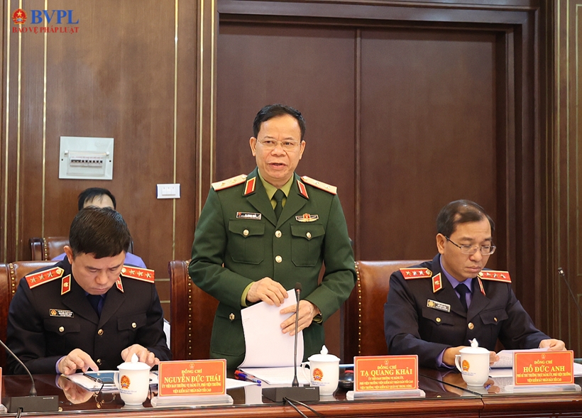 | Đồng chí Tạ Quang Khải, Phó Viện trưởng VKSND tối cao, Viện trưởng VKS Quân sự Trung ương phát biểu. |