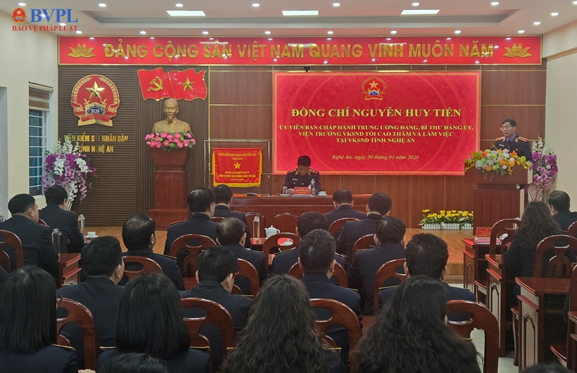 Trước khi phát biểu chỉ đạo, đồng chí Viện trưởng VKSND tối cao Nguyễn Huy Tiến đã đề nghị VKSND hai cấp Nghệ An thẳng thắn nêu những bất cập, khó khăn, vướng mắc trong thực tiễn công tác, hoạt động nghiệp vụ và phối hợp với các cơ quan tiến hành tố tụng, nhất là đối với VKSND khu vực sau sáp nhập chính quyền 2 cấp, sáp nhập VKSND khu vực, cũng như mạnh dạn kiến nghị, đề xuất để lãnh đạo VKSND tối cao xem xét, giải quyết.