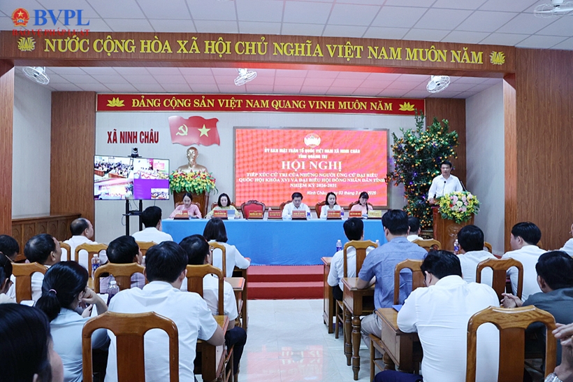 Tiếp tục chương trình tiếp xúc cử tri tại tỉnh Quảng Trị, chiều ngày 3/3/2026, tại Hội trường UBND xã Ninh Châu, tỉnh Quảng Trị, Ban Thường trực Ủy ban MTTQ Việt Nam xã Ninh Châu phối hợp với UBND xã tổ chức Hội nghị tiếp xúc cử tri của những người ứng cử đại biểu Quốc hội khoá XVI (Đơn vị bầu cử số 3) và đại biểu HĐND tỉnh, nhiệm kỳ 2026- 2031 (Đơn vị bầu cử số 12).