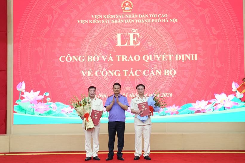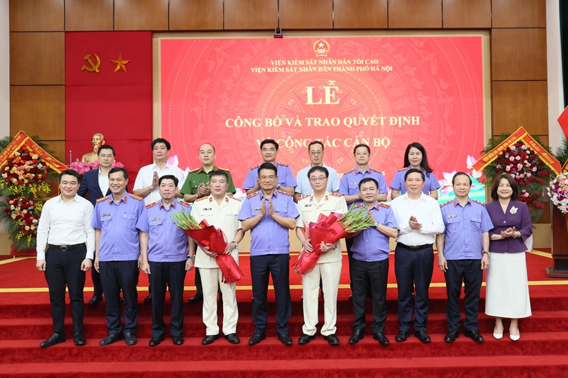 Tại buổi lễ, đồng chí Nguyễn Thanh Hải, Vụ trưởng Vụ Tổ chức cán bộ (Vụ 15), VKSND tối cao đã công bố các quyết định của Viện trưởng VKSND tối cao về việc điều động, bổ nhiệm đồng chí Nguyễn Hoài Nam - Kiểm sát viên VKSND tối cao, Vụ trưởng Vụ Công tố và kiểm sát điều tra án kinh tế, tham nhũng (Vụ 3), VKSND tối cao giữ chức vụ Viện trưởng VKSND TP Hà Nội; bổ nhiệm đồng chí Đỗ Dương Toàn, Trưởng Phòng Công tố và kiểm sát điều tra án kinh tế, tham nhũng (Phòng 3), VKSND TP Hà Nội giữ chức vụ Phó Viện trưởng VKSND TP Hà Nội.