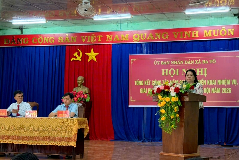 Phát biểu tại hội nghị, Viện trưởng VKSND tỉnh Quảng Ngãi - Phạm Thị Kim Liên ghi nhận nỗ lực và kết quả xã Ba Tô đạt được sau quá trình sắp xếp, tinh gọn bộ máy. Đồng chí đề nghị địa phương tiếp tục đoàn kết, nâng cao hiệu quả điều hành trong năm 2026.