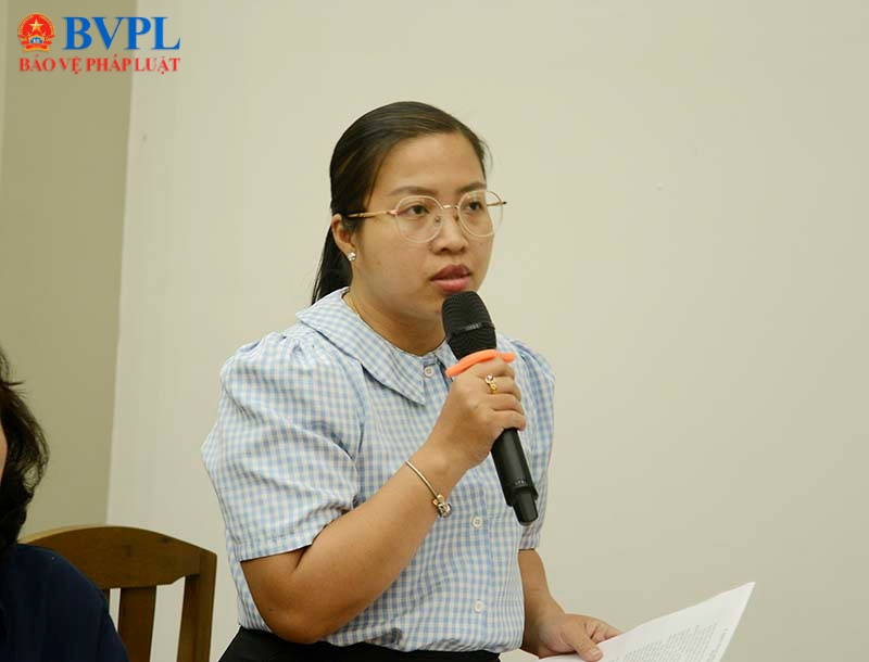 | Cử tri Trần Thị Huỳnh Nga trình bày ý kiến. |