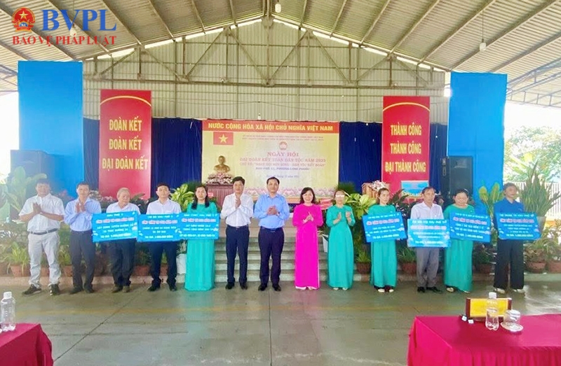 | Đồng chí Lê Văn Đông trao tặng 10 phần quà ý nghĩa tại Ngày hội Đại đoàn kết dân tộc. |