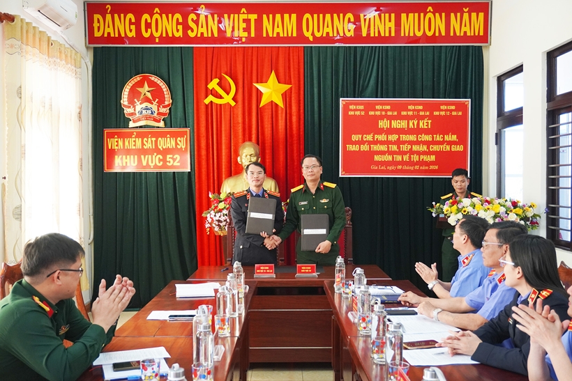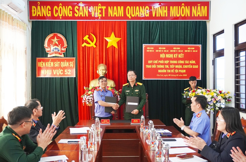 Tiếp nối chuỗi hoạt động tăng cường công tác phối hợp liên ngành, ngày 9/2, tại phường Thống Nhất, tỉnh Gia Lai, Viện kiểm sát quân sự (VKSQS) khu vực 52- Quân khu 5 đã tổ chức Hội nghị ký kết Quy chế phối hợp (QCPH) trong công tác nắm, trao đổi thông tin, tiếp nhận, chuyển giao nguồn tin về tội phạm với VKSND các khu vực 10, 11 và 12, tỉnh Gia Lai.