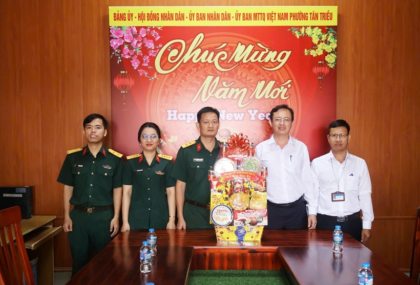 | Đoàn VKS Quân sự Khu vực 72 thăm hỏi, chúc Tết phường Tân Triều. |